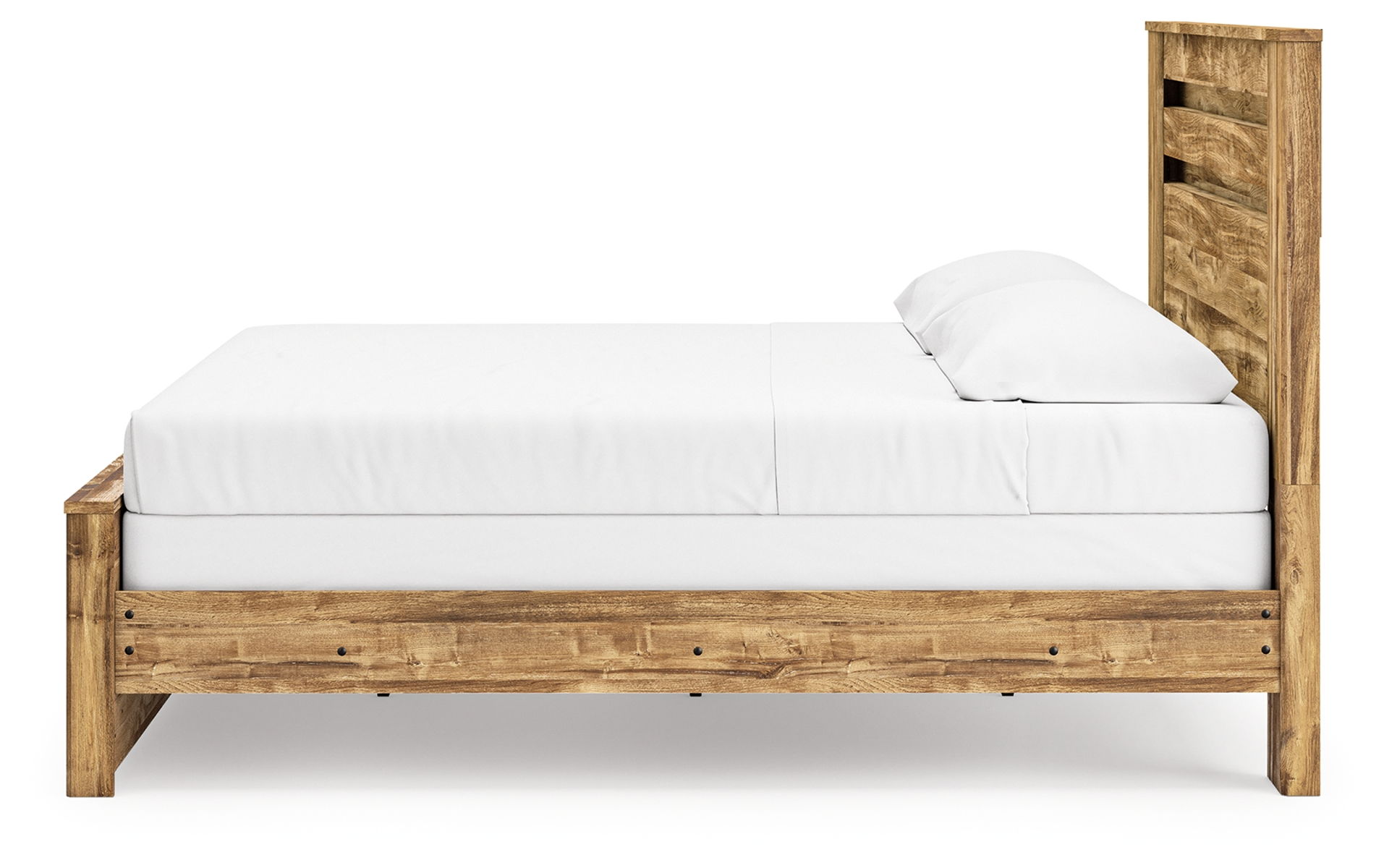 Approachable in character, this panel bed embodies fresh style that inspires. Its warm finish and replicated oak grain invite with homey charm, while the dynamic paneled styling lends a contemporary attitude. From urban chic to modern farmhouse, this versatile piece seamlessly reflects your eye for design.
