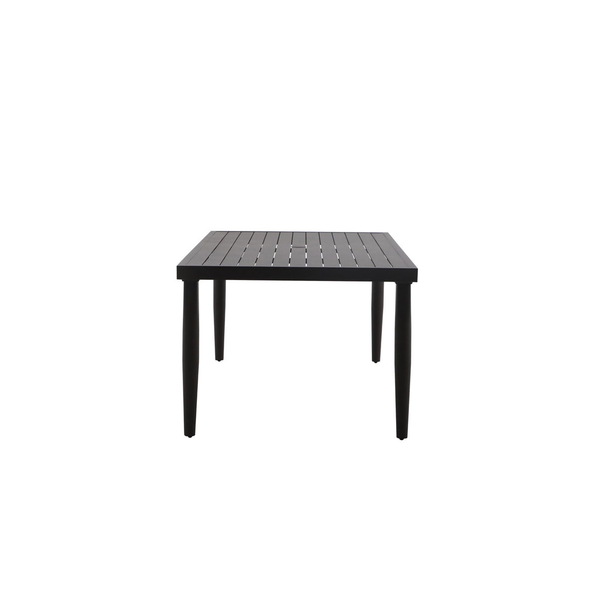 Create the perfect setting for outdoor dining with the MOANA Patio Dining Table, designed to bring durability and style to your patio. Constructed with a strong aluminum frame and a baked-on powder coat finish, this table is built to withstand the elements while resisting scratches for long-lasting use. The classic slatted top not only adds visual appeal but also aids in water drainage, making it ideal for outdoor use in any weather. At 72 inches in length, this table comfortably seats up to six guests, making it perfect for family dinners, barbecues, and casual gatherings. The sleek dark frame and minimalist design offer a modern, understated elegance that easily fits into various outdoor settings, enhancing the ambiance of your patio space.