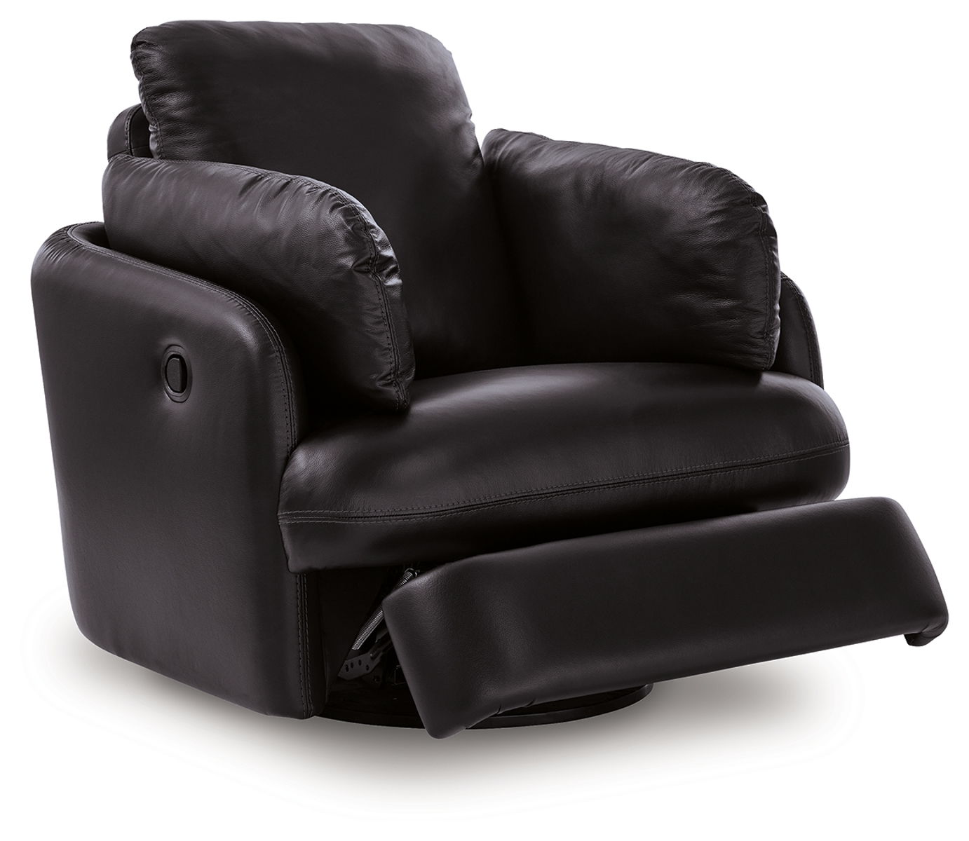Looking cool and contemporary is great. But when it comes down to it, you’re all about affordably luxurious lounging. With the top grain leather and expertly matched faux leather on this swivel glider recliner, you get the sleek look you love without breaking the bank. Its easy one-pull reclining motion effortlessly brings you to a reclined and relaxed position. So grab some popcorn, settle in and enjoy the show.
