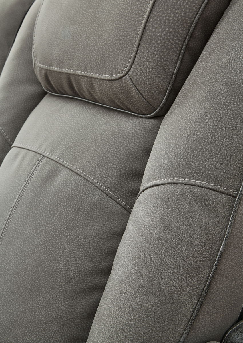 This sleek, ultra-modern power reclining sofa with drop-down table has it all. With designer style and head-to-toe comfort, it has the upscale look of leather at a scaled-down faux leather price. Its two-tone upholstery is more durable and water-repellent than regular leather, an added bonus for families. Features including wireless and USB charging, an adjustable headrest and an extended ottoman make this the next generation of power recliners.