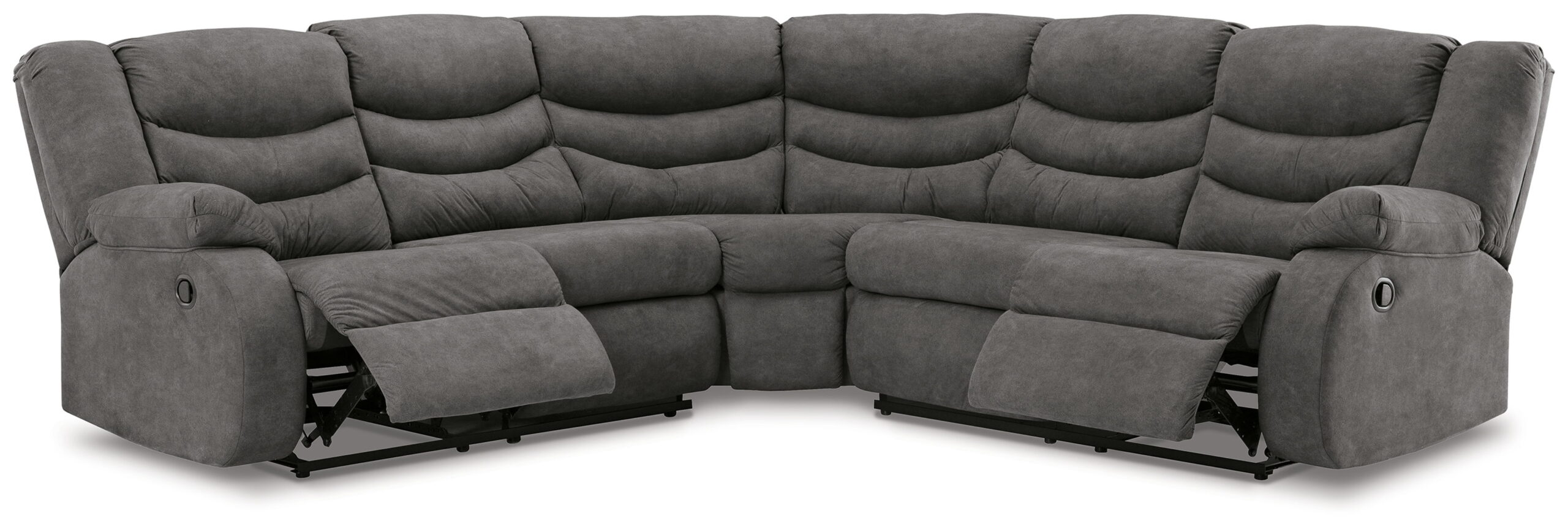 Affordable luxury made easy. An essential for living room lounging, this sectional is a star in social spaces. Its sleek faux leather is well-suited for mixing and matching with your existing pieces. Pull tab reclining keeps you and your companions covered when it comes to comfort. And this functional piece is equally as fashionable, with design details like a channel-stitched back incorporating subtle visual interest.
