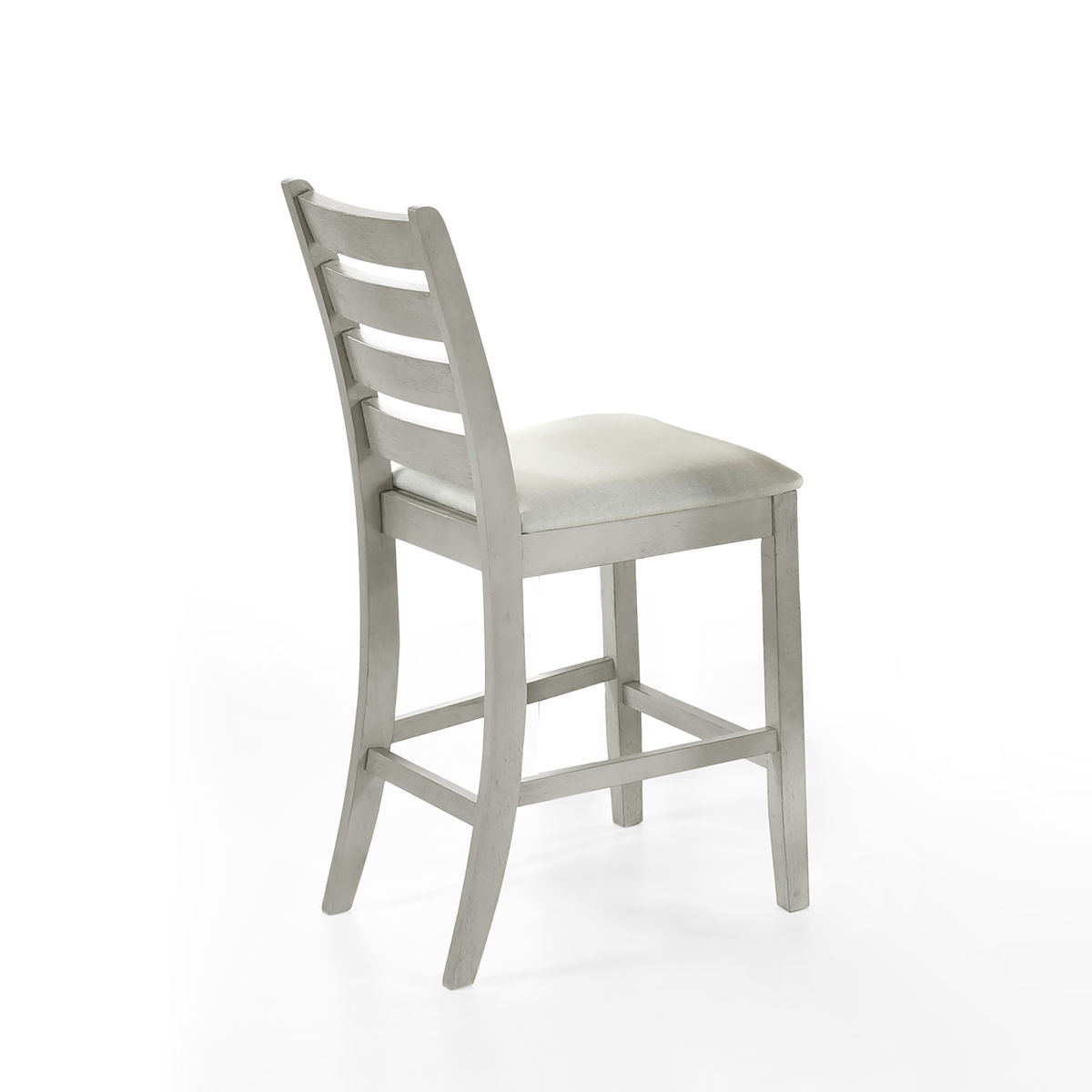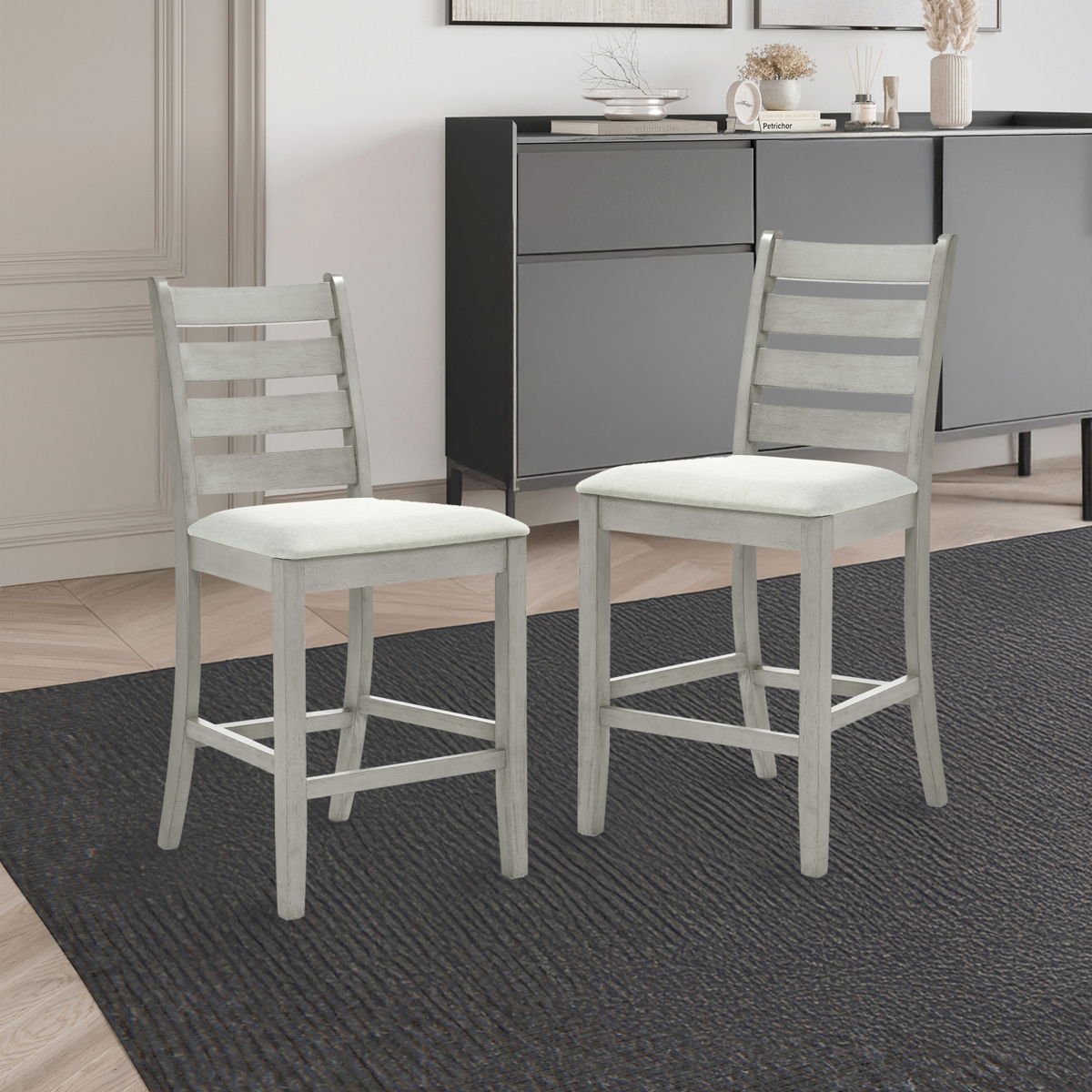 Introducing the Pascal Ladderback Counter Chairs, a perfect blend of durability and style. These counter-height chairs are crafted from solid Rubberwood and feature four base stretchers for enhanced stability, ensuring they withstand daily use with ease. The chairs boast a rich, sophisticated finish achieved through a meticulous multi-step process, including rub-throughs and glazing that enhance the natural beauty of the wood. Designed for comfort, each chair includes high-density foam cushions covered in easy-care 100% polyester fabric, offering a comfortable seating experience. With subtly rounded edges, tapered legs, and a classic ladderback design, these chairs bring an upscale look to any space. Their versatile style seamlessly fits into transitional, farmhouse, and contemporary decor, making the Pascal Ladderback Counter Chairs a stylish and practical addition to your dining or kitchen area.