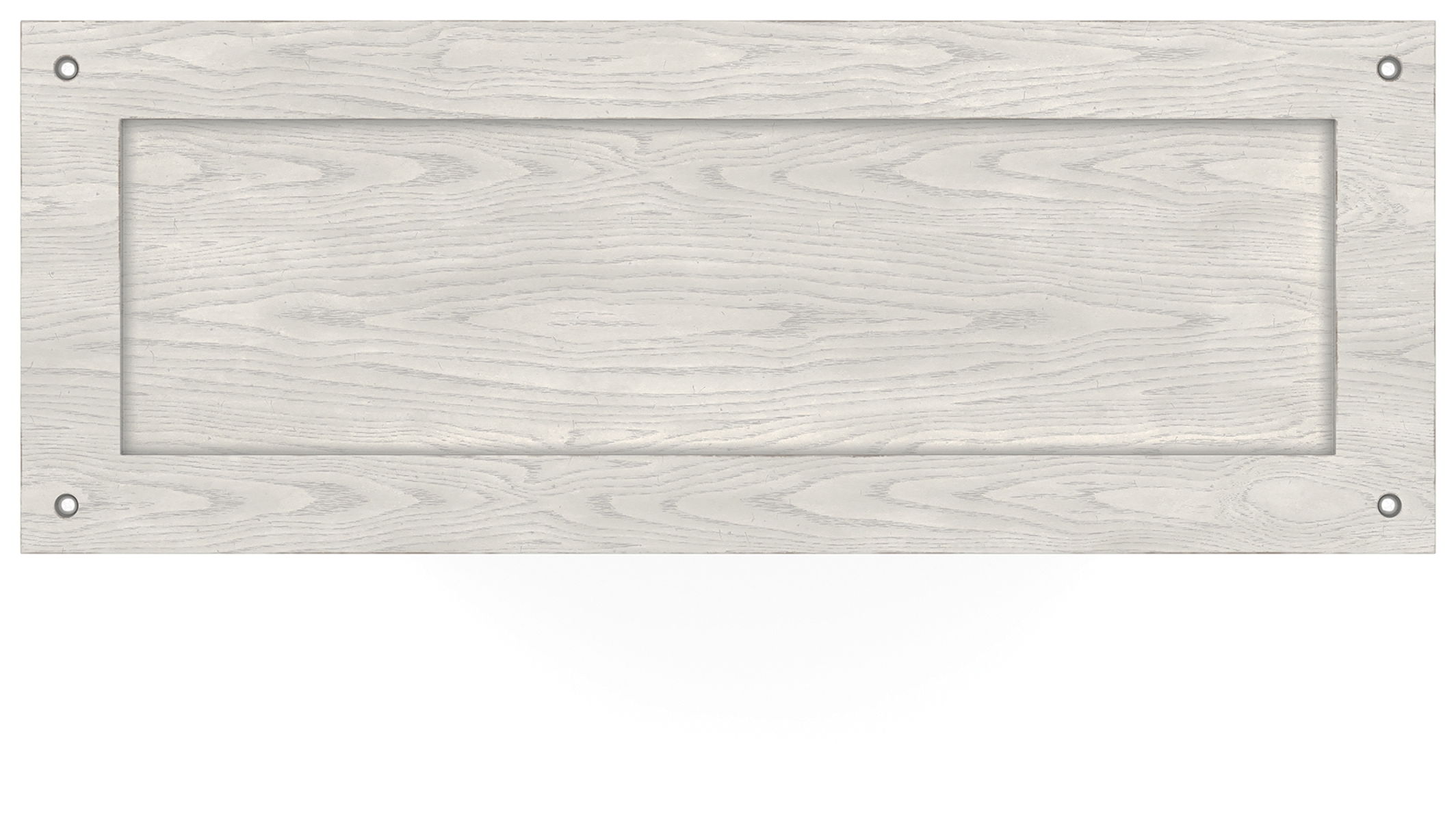 - Antiqued white finish with wood grain texture
