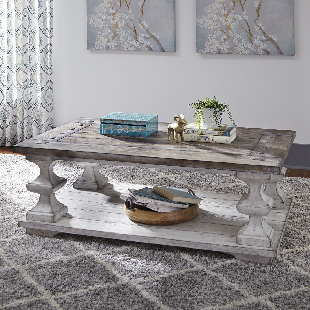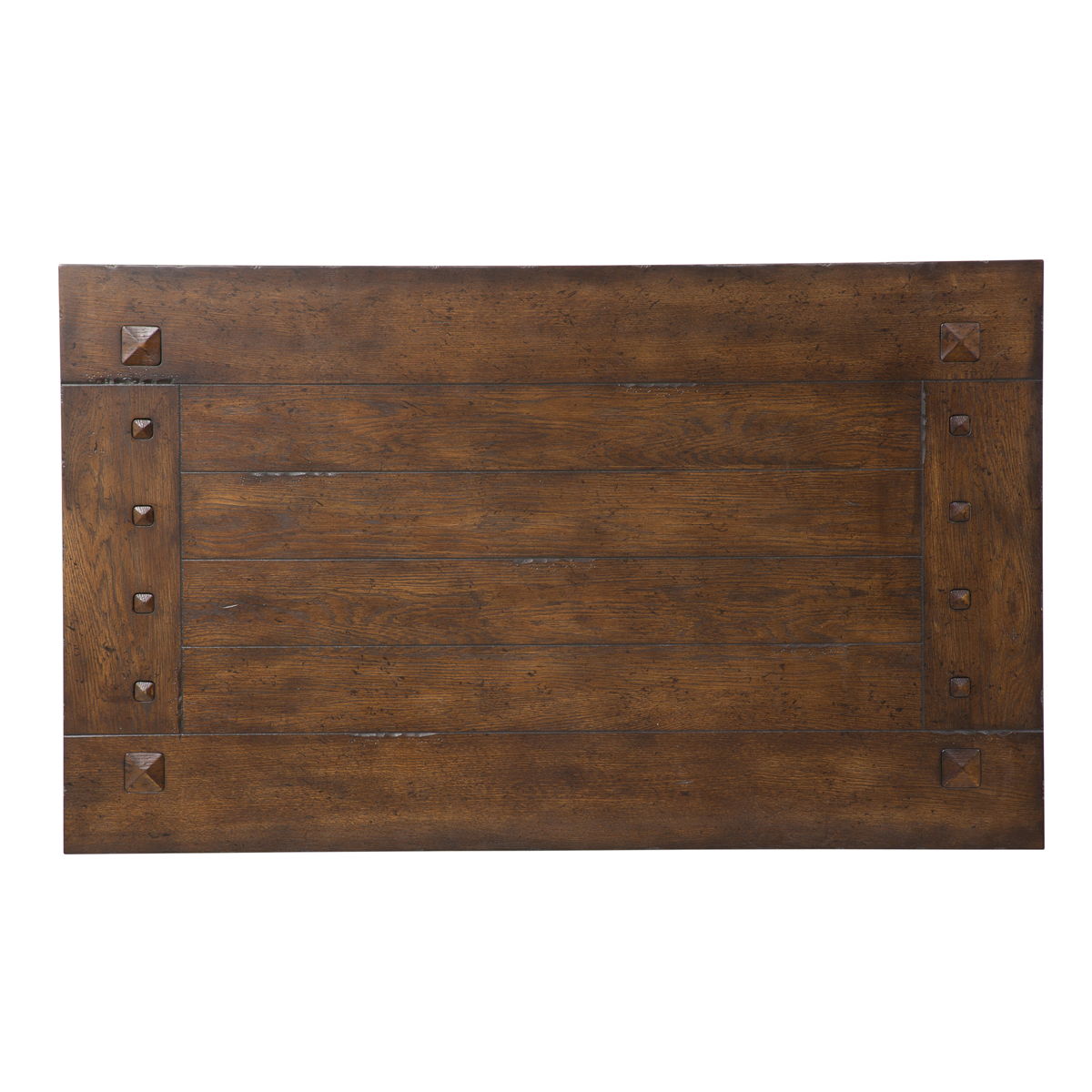 Elevate your space with the Spanish style Sedona cocktail table. Crafted of rubberwood solids, this piece features a Kona brown finish, appealing planked top with square peg accents, bottom shelf for additional storage, anchored by large Spanish style square turned legs. This gorgeous cocktail table will be a great addition to any traditional style space.