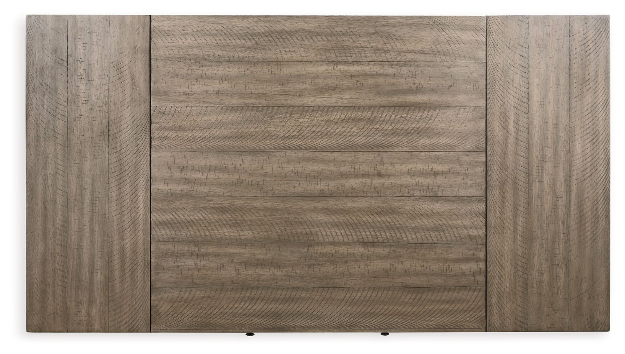 Set the scene for coastal chic or modern farmhouse living with this dining room table. Clean-lined, simply striking table doubles the charm with a brown tone top with plank effect, paired with a grayish white base with rub through effect for timeworn appeal. Multi-functional dining table features two convenient side drawers and a storage bin on each end for maximum use of space. Styled to comfortably seat six, this table makes room for one and all.