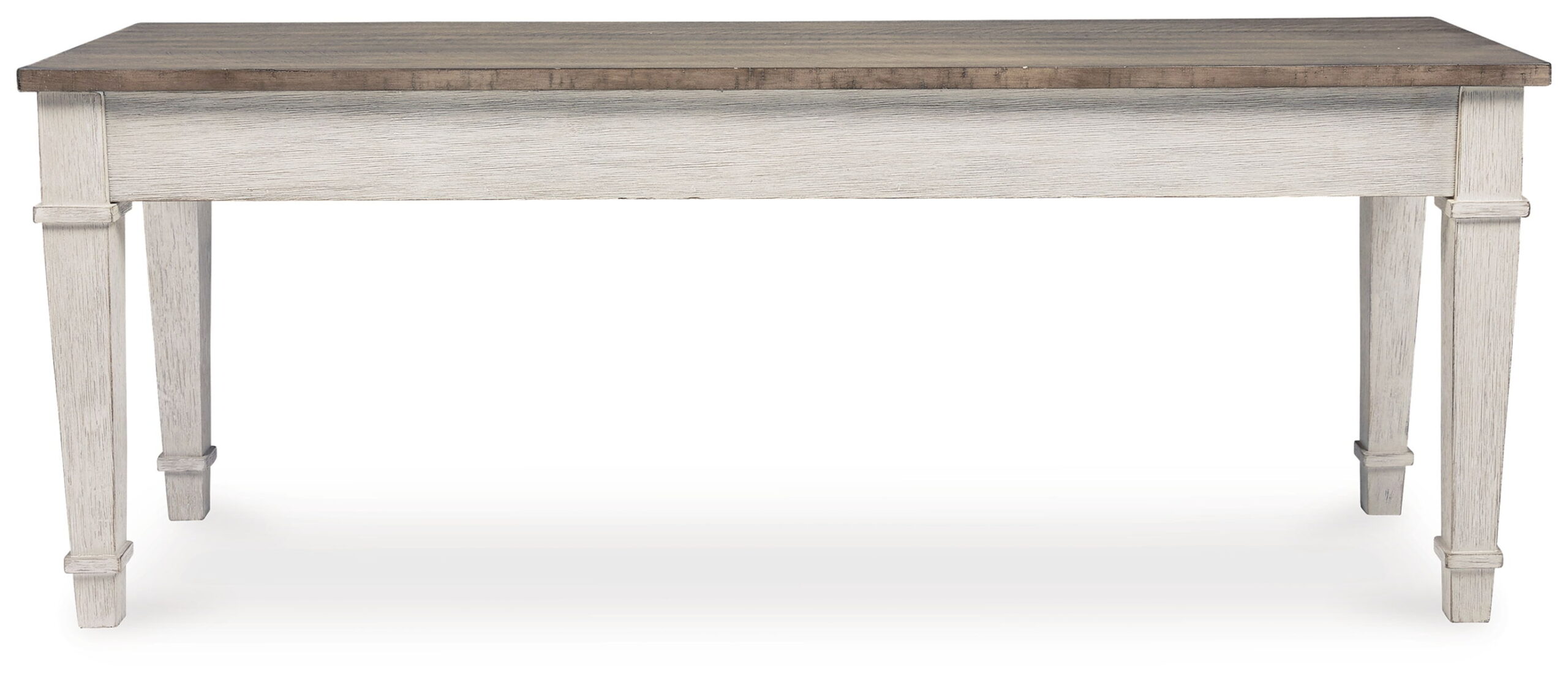 - Distressed grayish white finish