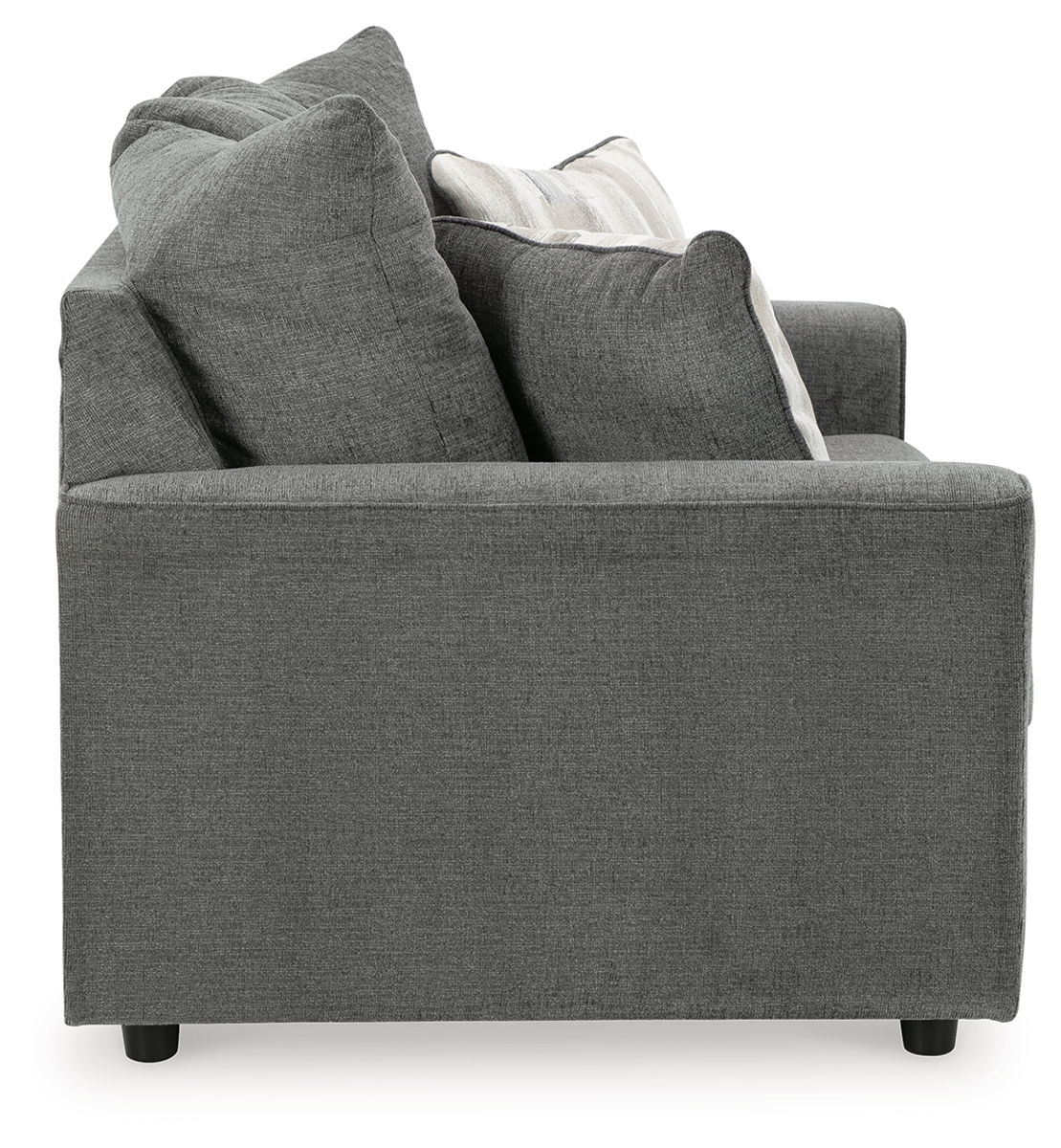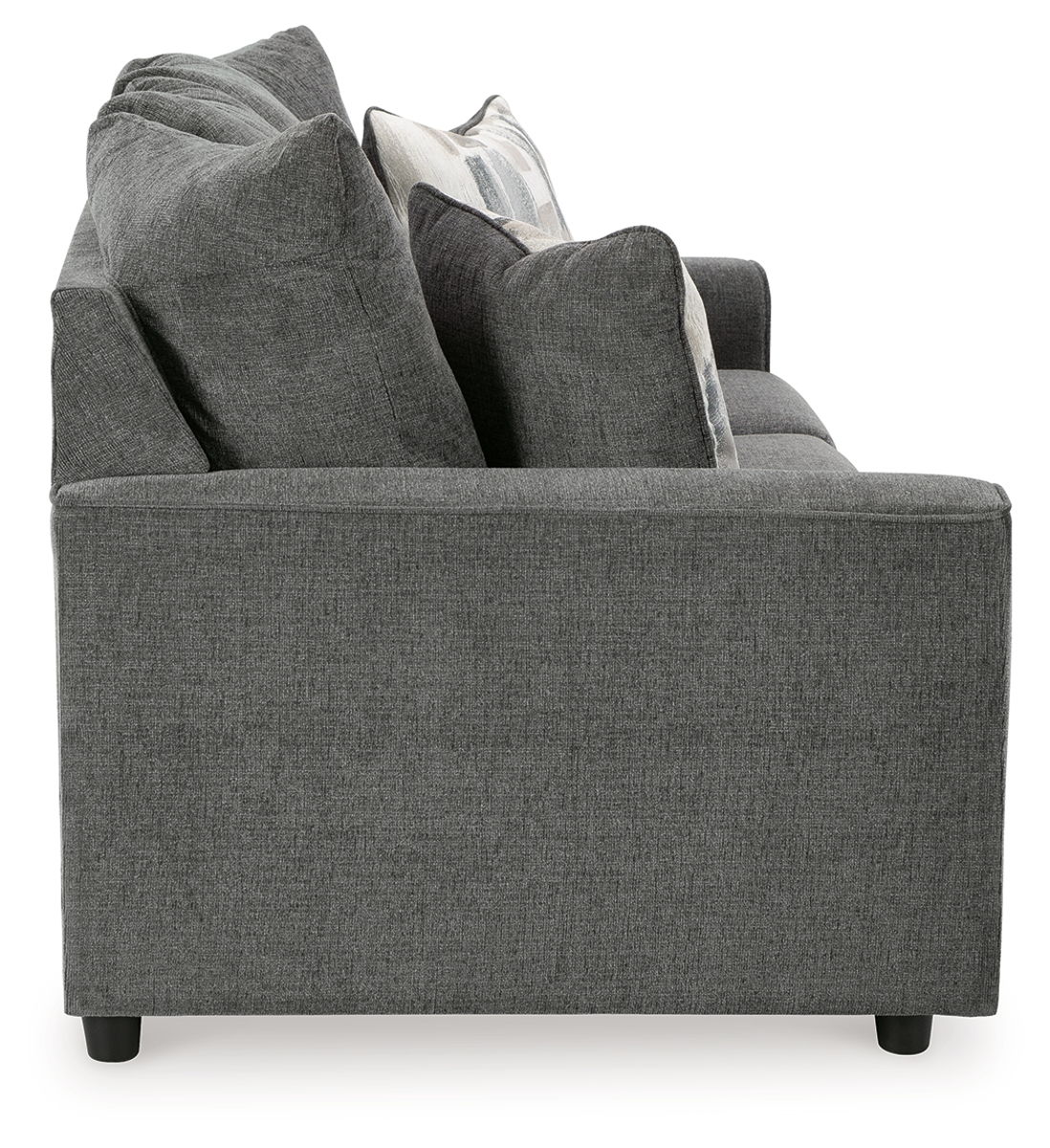 What’s new in neutrals? Shades of gray, of course. Embrace the sophisticated design trend with this gorgeous sofa and loveseat that offers a clean-lined, contemporary style at a comfortably cool price. Sure to lift your spirits, the plush chenille fabric is fabulously neutral. Contemporary flared arms give it a distinctive flair. This set also arrives with two cool brushstroke accent pillows to elevate the taste and comfort level.