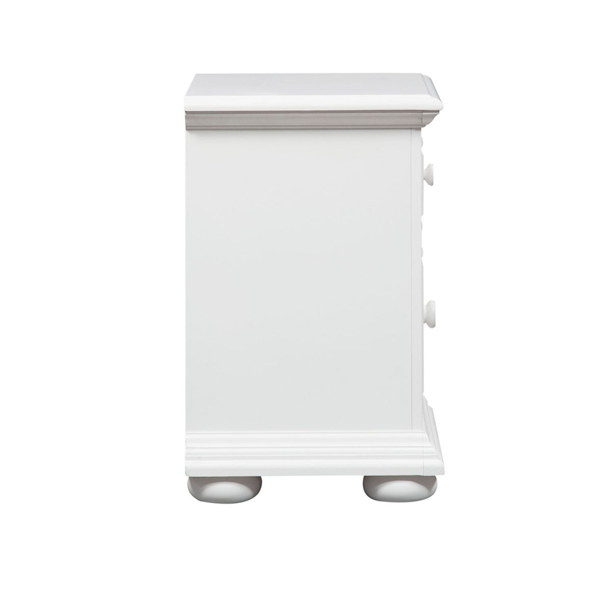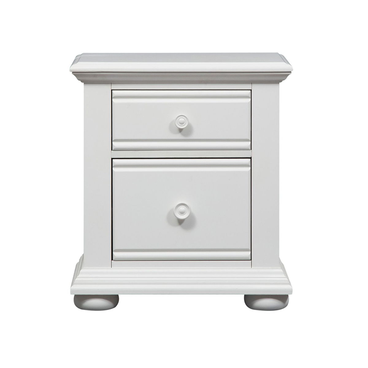 Cottage design is always in fashion. Summer house features the best of cottage with louvered panel accents in an Oyster white finish.