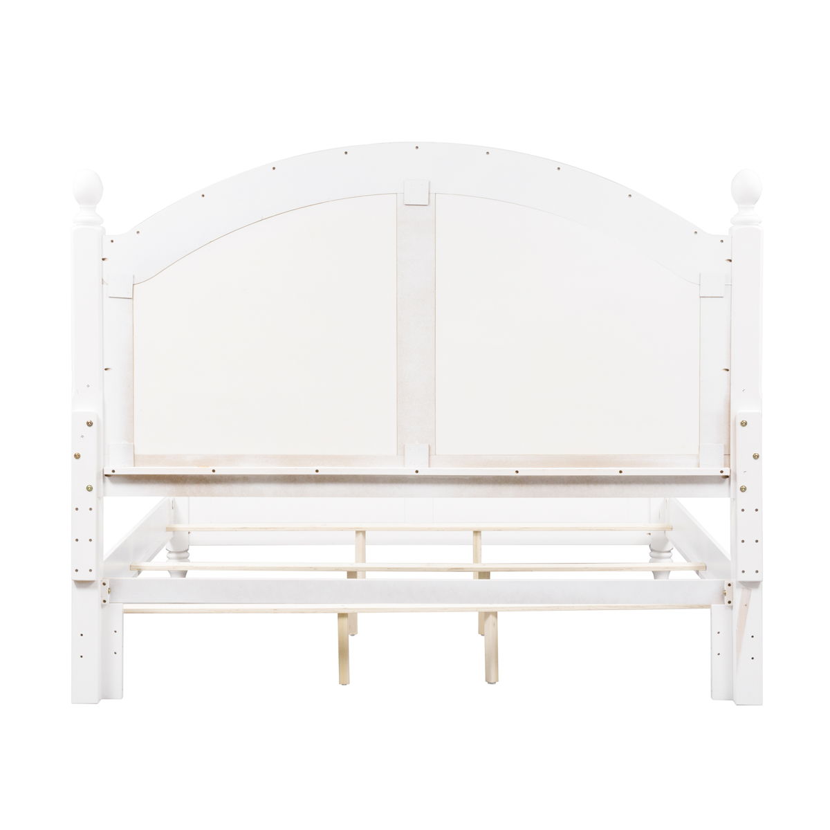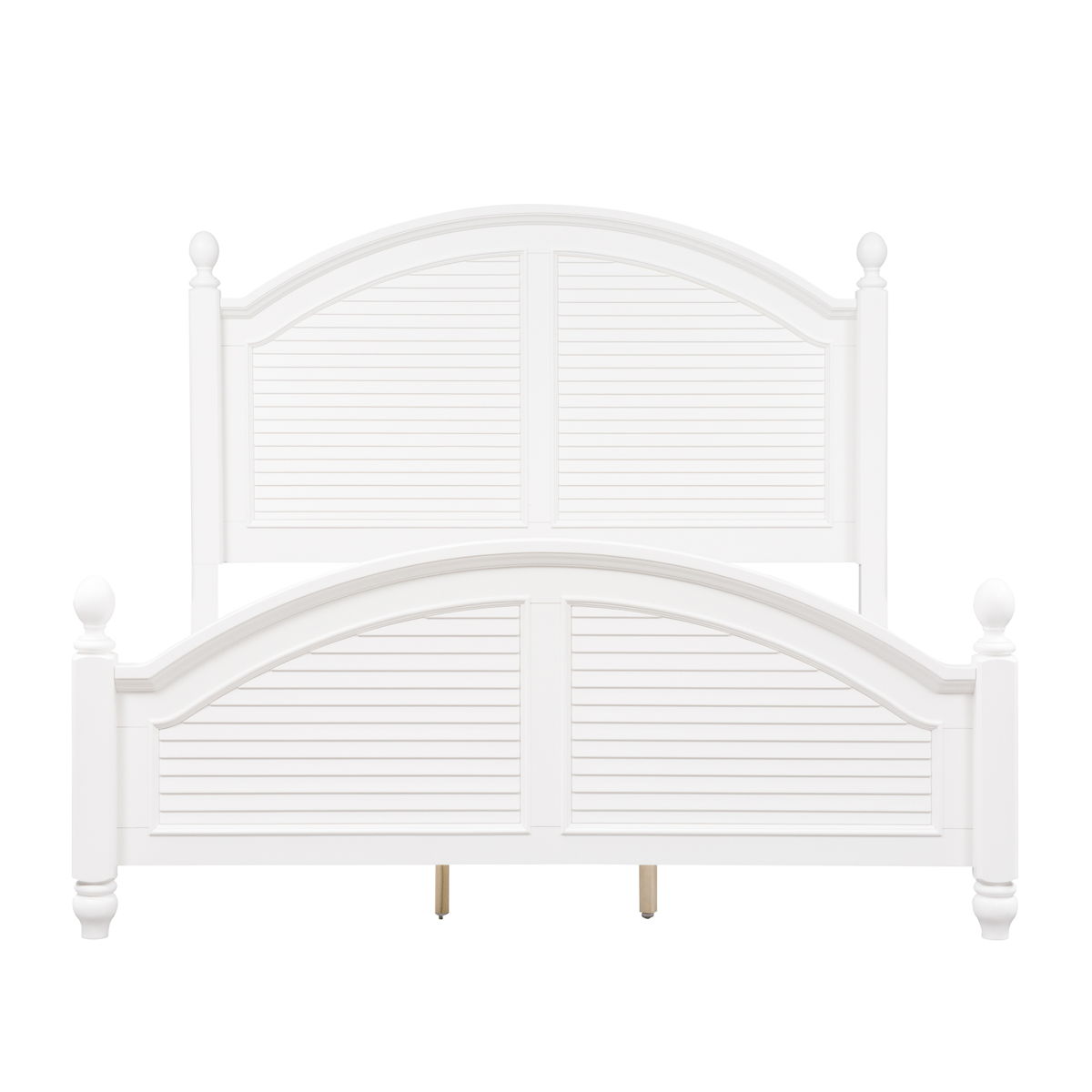 Have sweet dreams in this cottage style Summer House poster bed into your room. The oyster white finish is accented by louvered panels, arched crown molding, and egg-shaped finials, adding to the cottage charm. Made of pine and poplar solids, this bed features bolt-on rails and a center supported slat system, making this a sturdy and reliable bed.