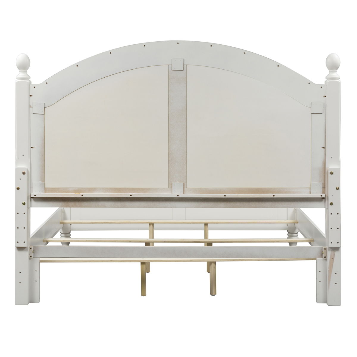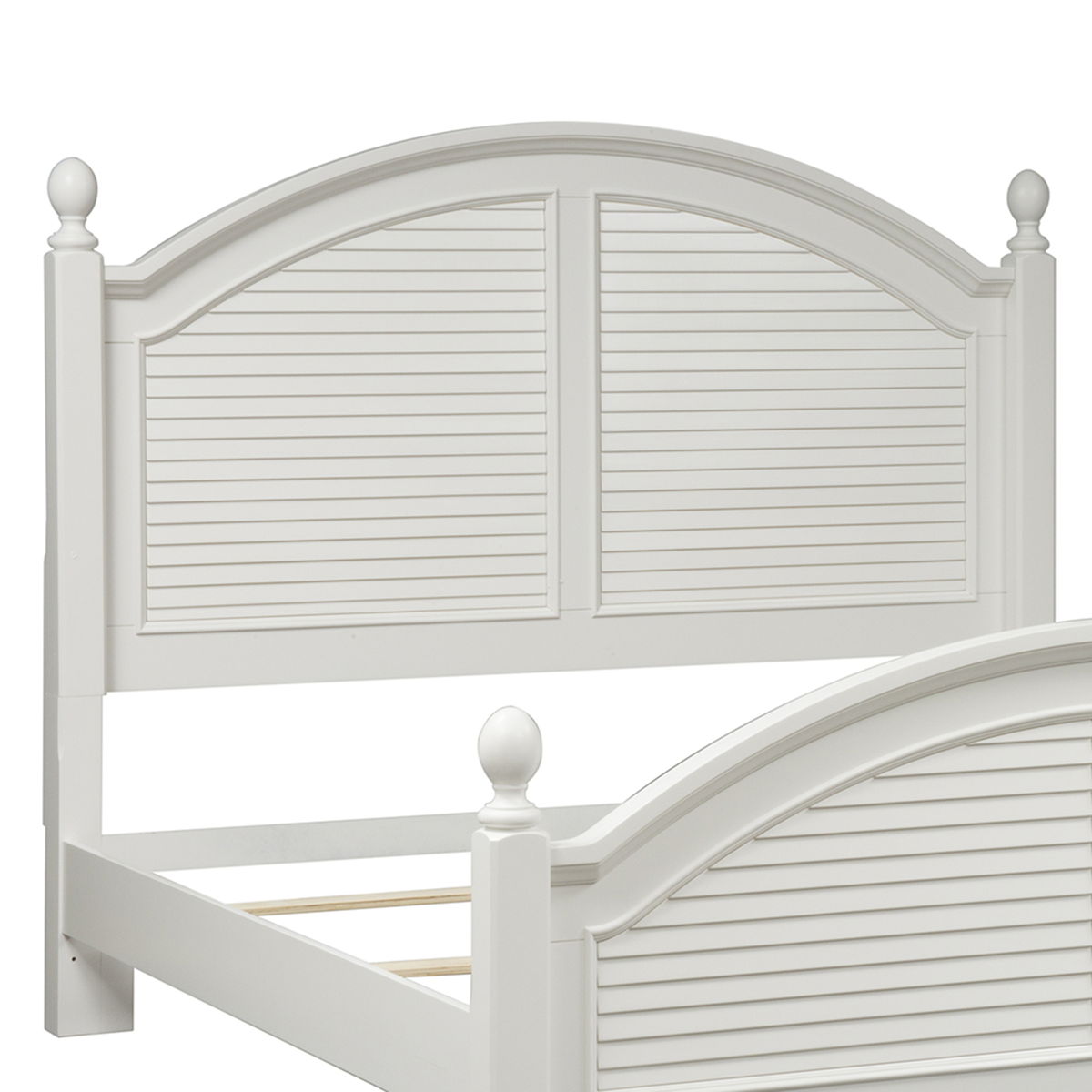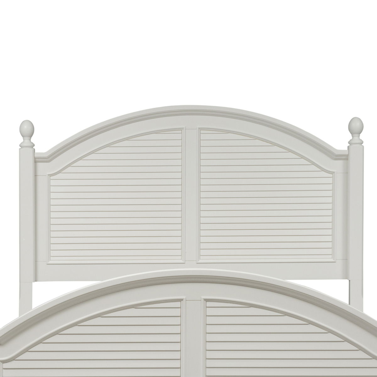 Features arched crown molding accented with a louvered back panel and flanked by two square post with top finale. Headboard can stand alone with Hollywood bed frame. Pair with the footboard and rails for a complete bed.