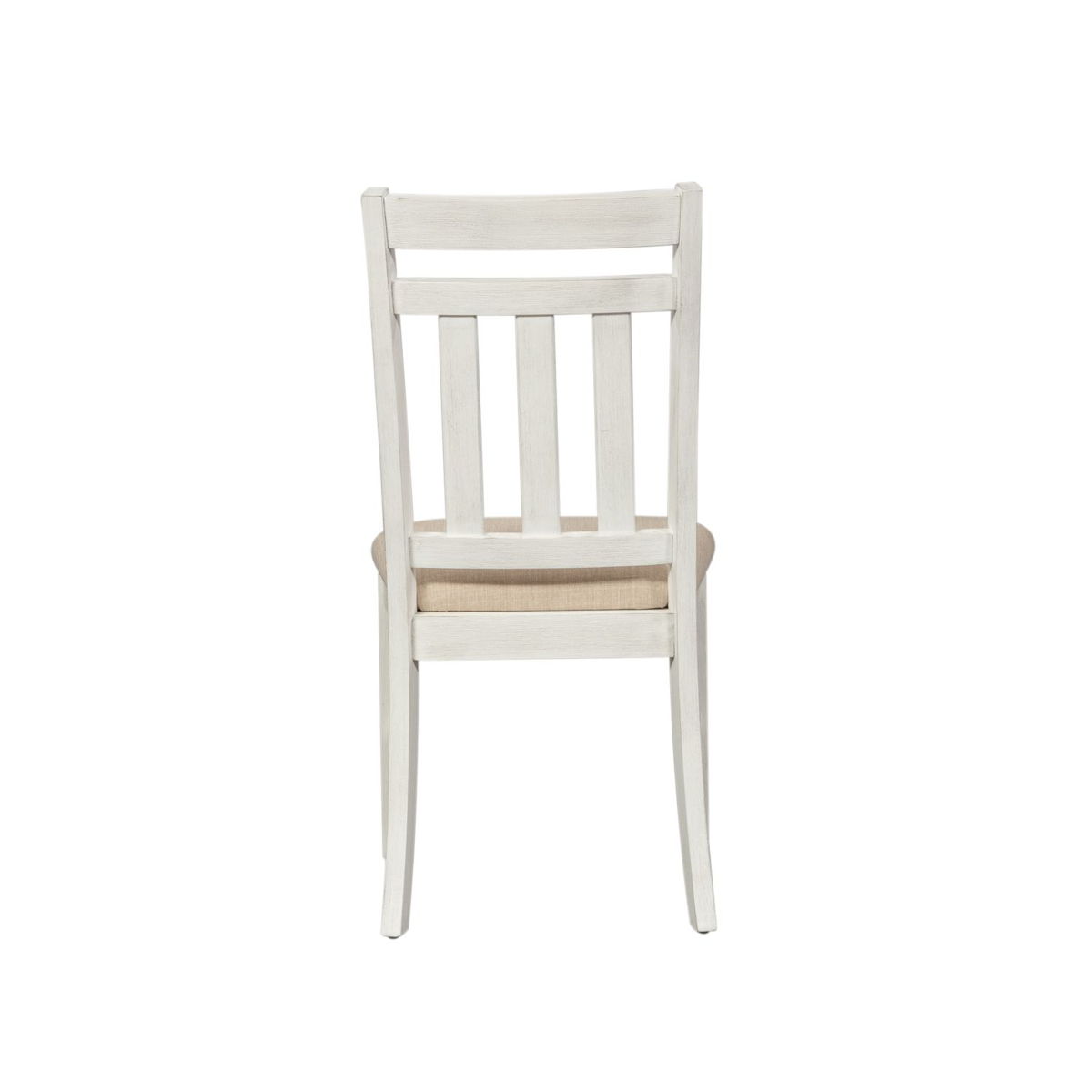 Summerville is a combination of style and function. The 48″ square table features a storage pedestal base with two shelves. Combine the table with modern sophisticated styled chairs with square backs upholstered in a white leather with button tufted accents and sloped arms