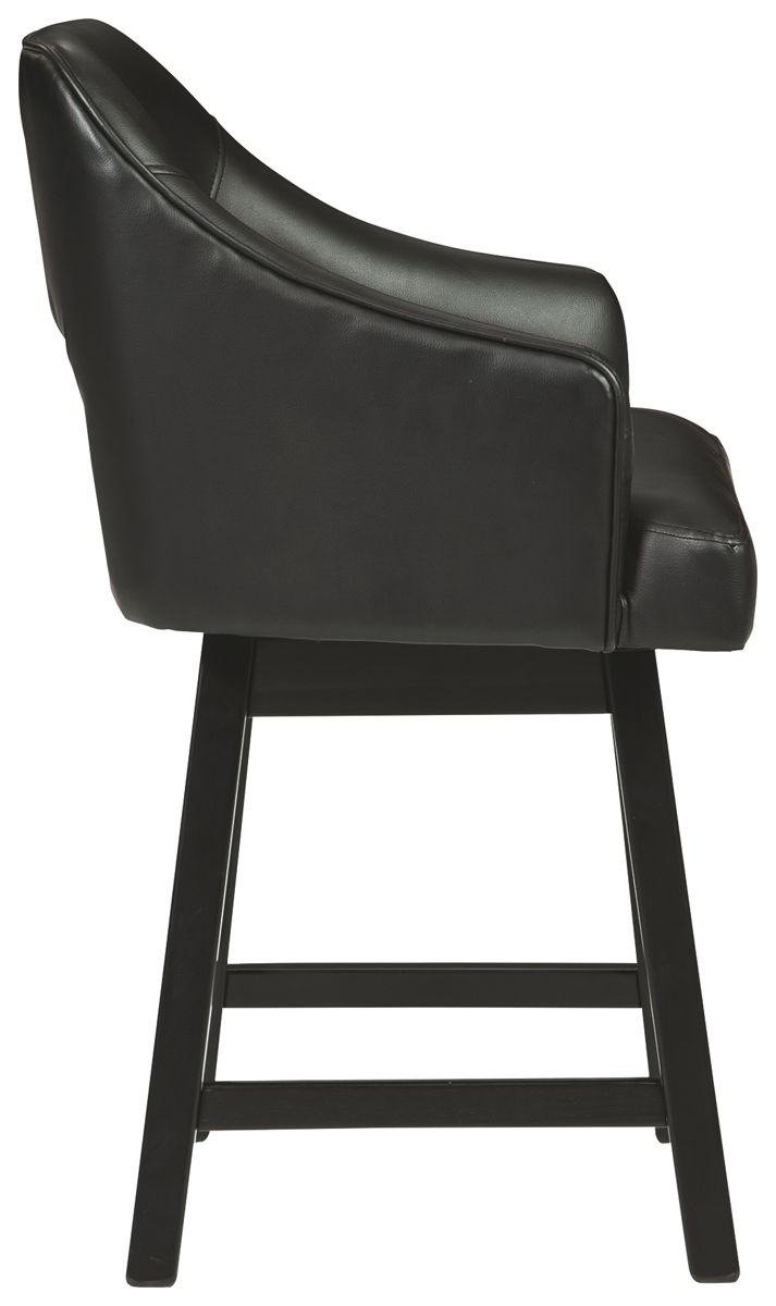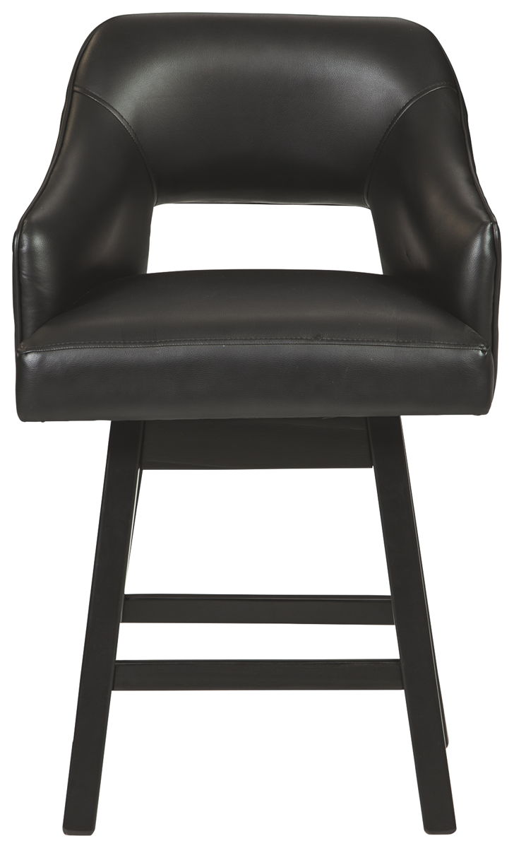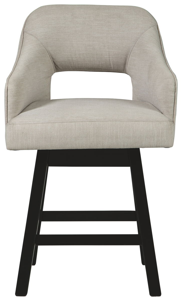 This striking barstool invites you to take contemporary modern style for a spin. Comfortably cushioned seat, self-returning swivel and contoured back make it beautifully in tune with your needs. Luxurious upholstery is a sensational touch.