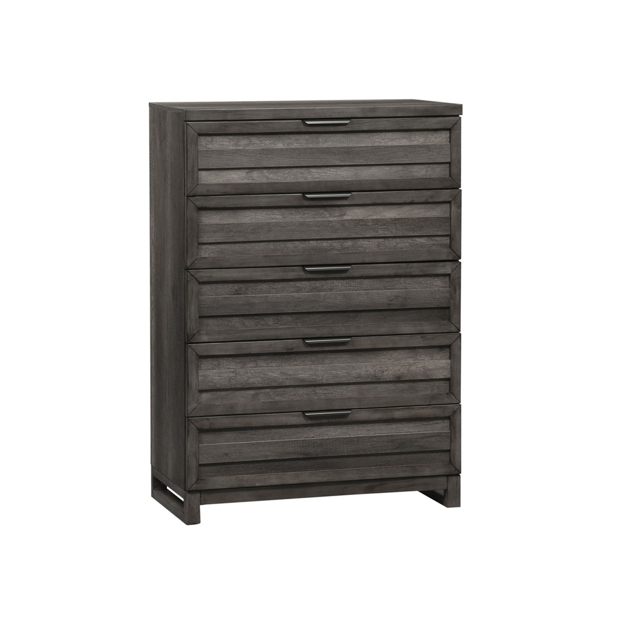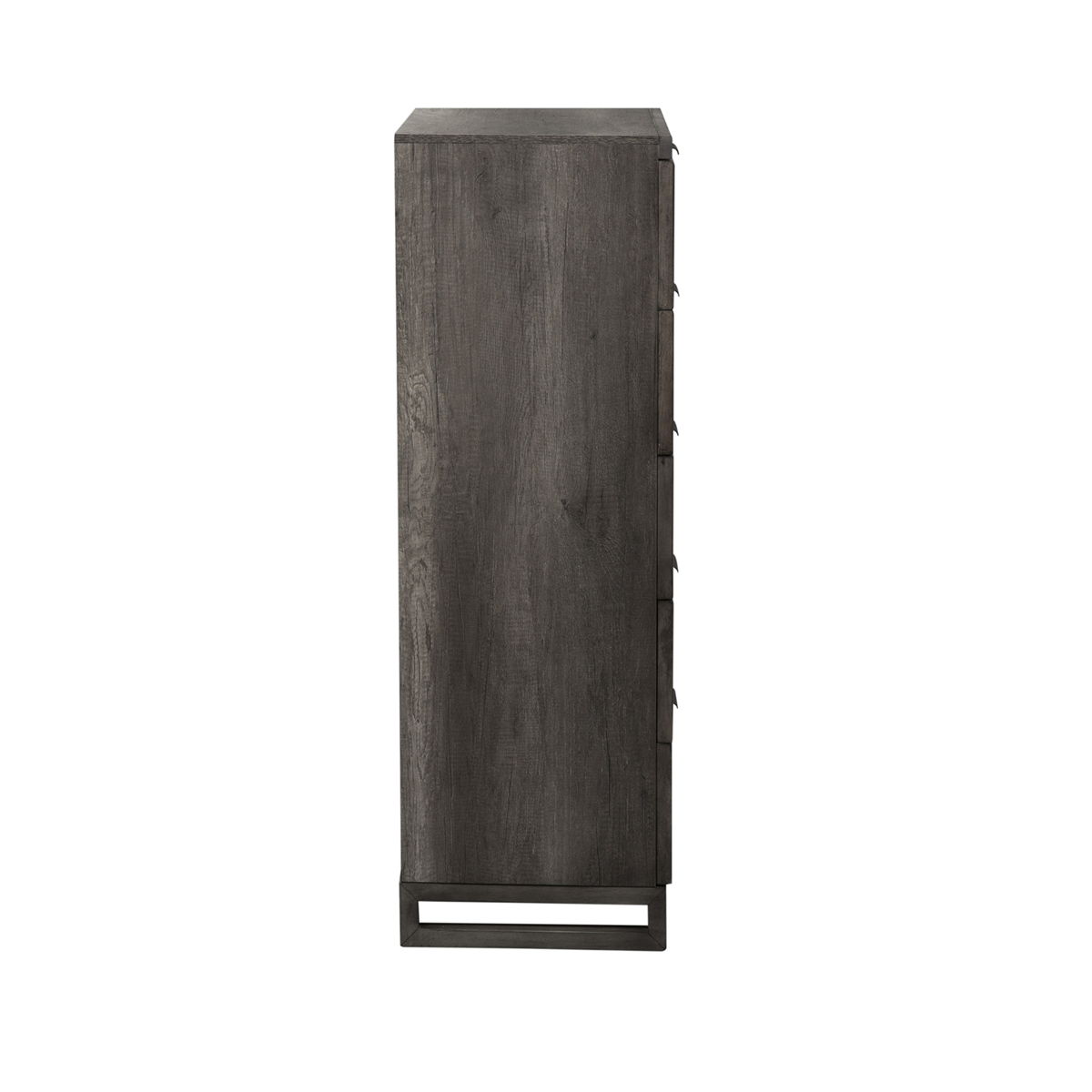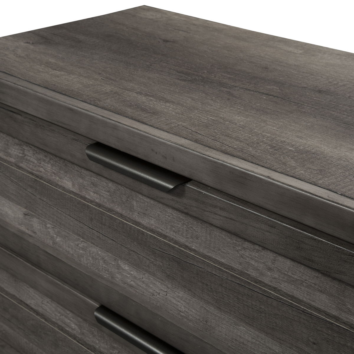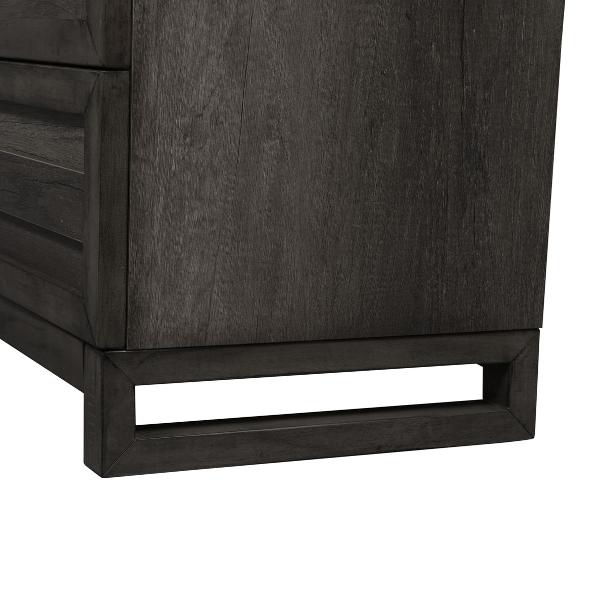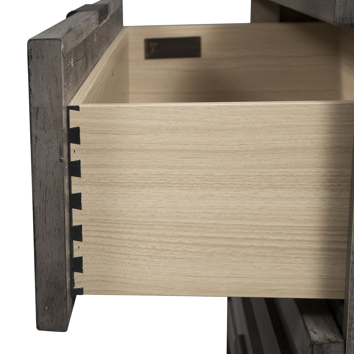 This urban Tanners Creek chest is the perfect way to enhance your room with a modern style. This piece is crafted with melamine and rubberwood solid framing, featuring bottom case dust proofing, solid wood picture frame drawer fronts, anchored by a solid wood sled base. The melamine is scratch resistant and is sure to last in any home. The dark antique brass center finger pull hardware effortlessly adds dimension, making it stand out in any space.