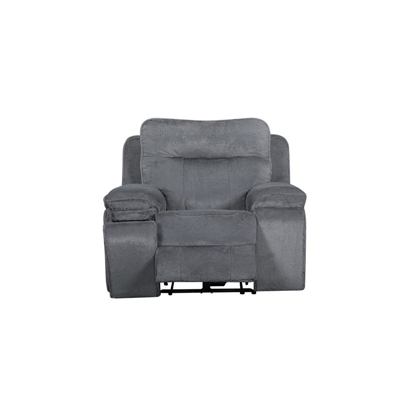 The Teddy Recliner with Power Headrest and Footrest in Gray is designed to offer the perfect blend of luxury, comfort, and functionality. Built with hardwood and plywood interior frames and sturdy motion mechanisms, this recliner provides a durable foundation for years of reliable use. The supremely soft cloud gray fabric, crafted from 100% polyester, delivers an irresistibly silky texture, making each seat feel like a premium experience. Thoughtfully designed with resilient springs and plush foam, the seating offers the perfect balance of support and softness, ensuring cushions retain their shape over time. The zero gravity recline feature enhances relaxation by evenly distributing body weight, relieving pressure on the spine, and promoting better circulation, which can help alleviate back pain. With adjustable head and footrests, you can enjoy personalized comfort at the touch of a button. Additionally, built-in cupholders and USB charging ports add modern convenience, keeping everything you need within reach. The Teddy Recliner is ideal for those seeking relaxation and practicality in their living space.