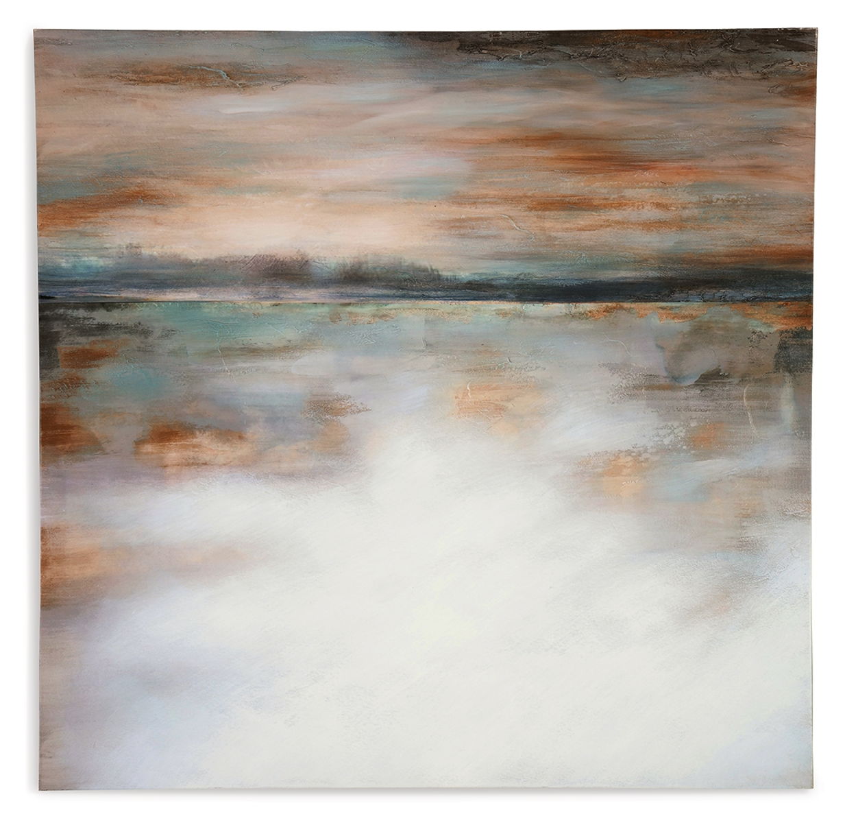 Keep your head in the clouds. This wall art is a dreamy addition to your modern decor. It’s a simply stunning abstract take on landscape paintings, gracing your space with its bright and airy design.