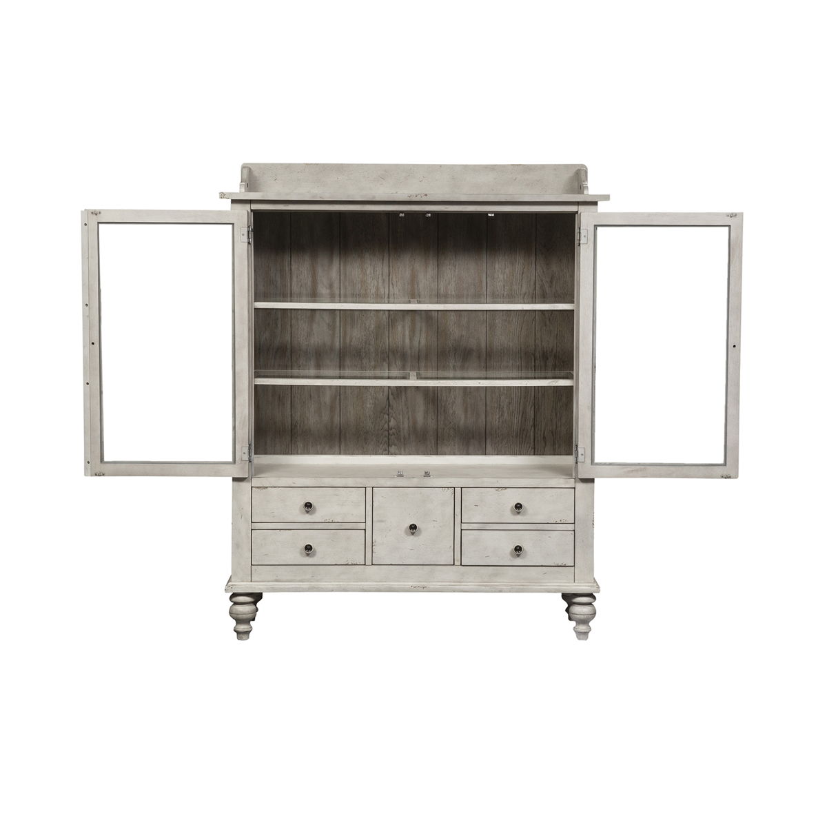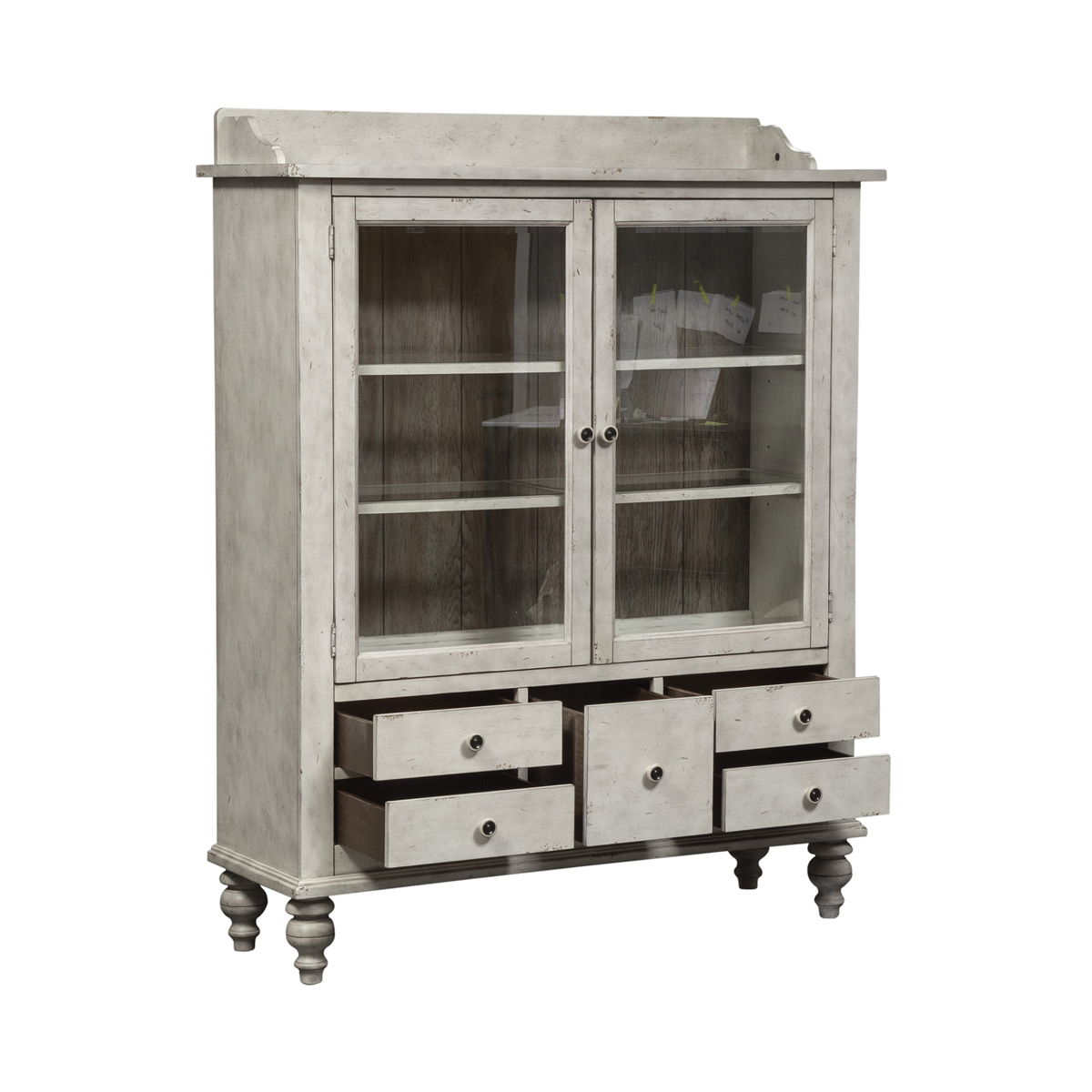 - Display Cabinet Has 5 Bottom Storage Drawers