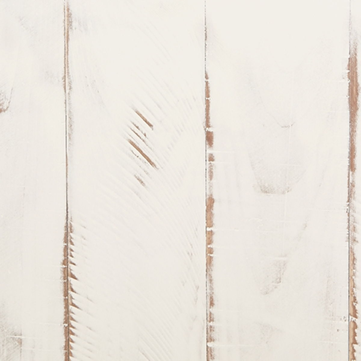 Double take. Sporting a two-tone finish that pairs a distressed vintage white with aged natural pine color, this chairside end table elevates the art of rustic farmhouse living. Enhancing its charm: shelved storage visible through the cabinet door with inset metal grill.
